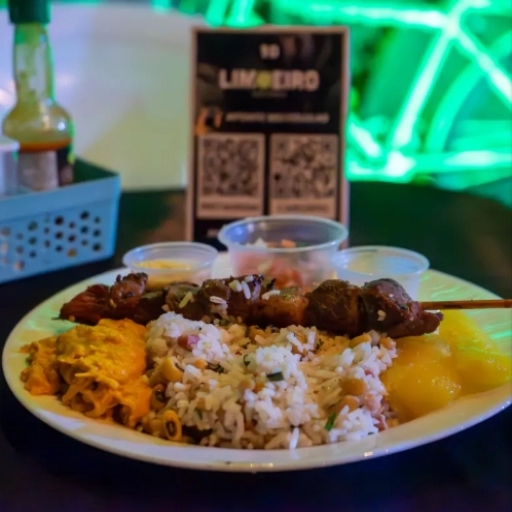 Arroz ou Baião, farofa,vinagrete, mandioca.